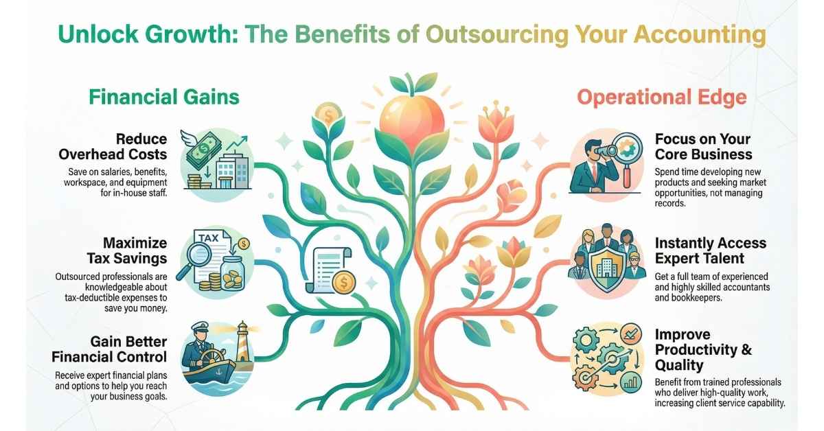 Through outsourcing, you can get access to high-quality accounting services, save time and money and minimize the risks that involved with relying on in-house staff.